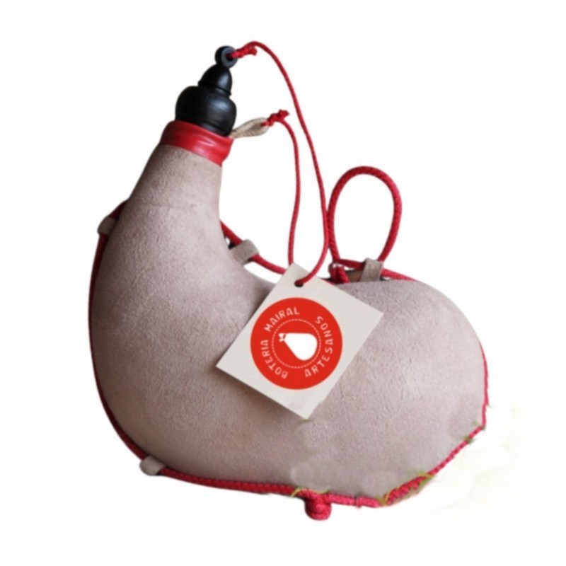 Bota de vino artesanal con piel de cabra de curtición vegetal y triple cosido. Su interior puede ser de pez (apta solo para vino) o con cámara interior apta para todo tipo de bebida (en el selector denominado látex). Incorpora cordón de algodón y brocal.